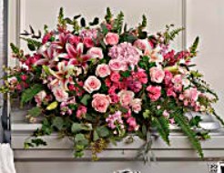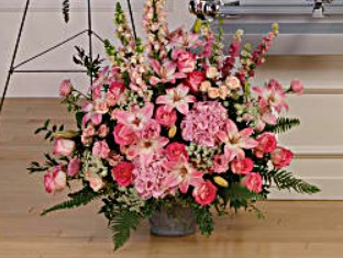 Each arrangement is thoughtfully designed using a palette of gentle pinks, lush greenery, and soft textures, reflecting love, remembrance, and the grace of a life well lived.